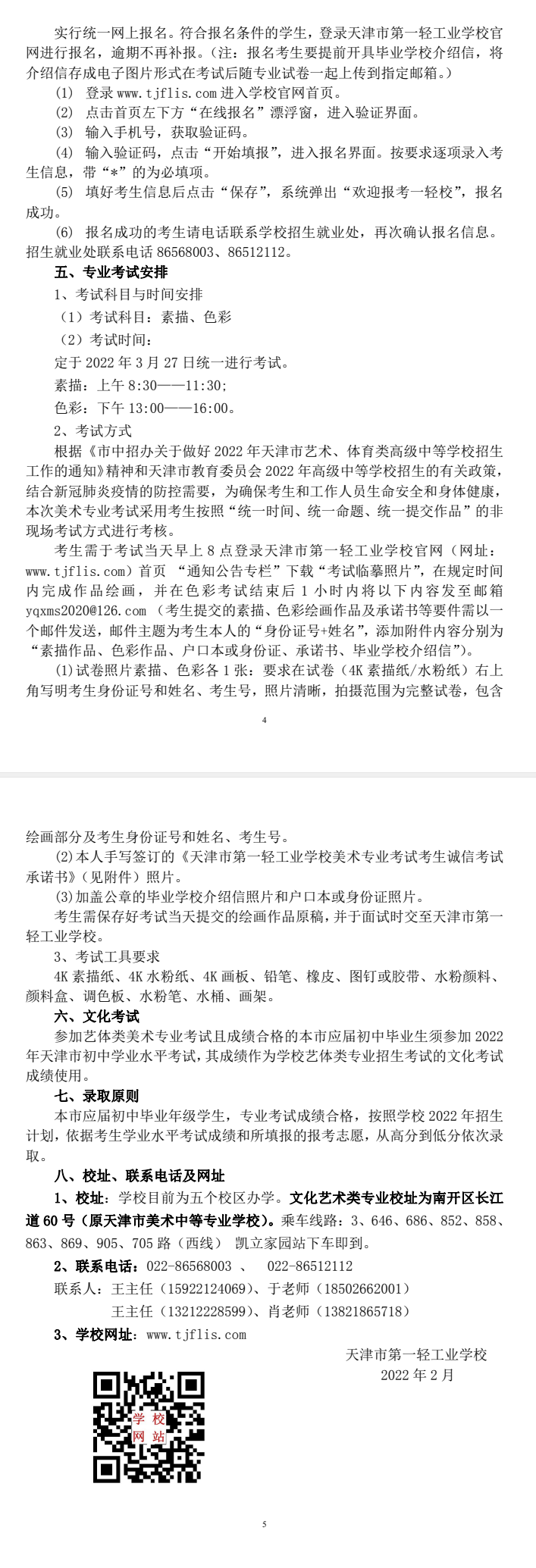 本文标题:2022年天津市第一轻工业学校艺术类专业招生章程免责声明